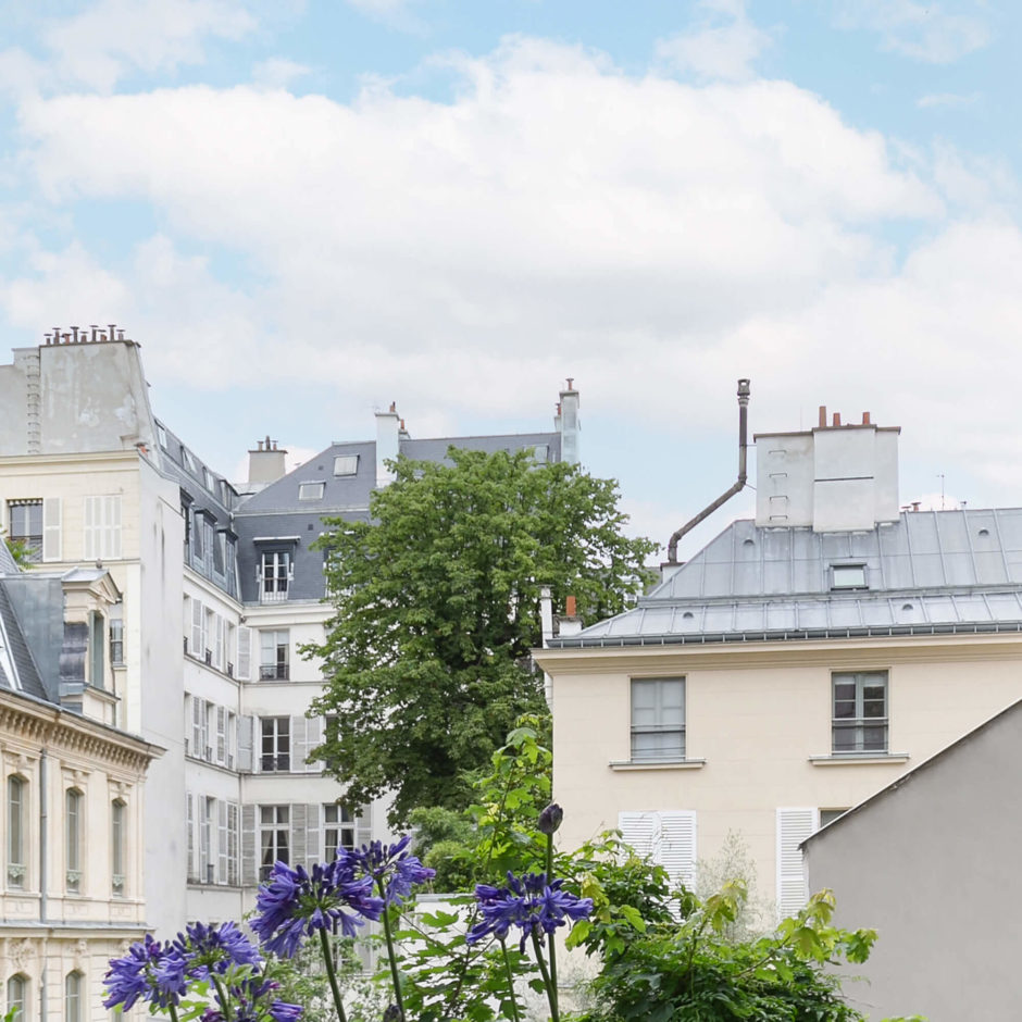 This sublime 115 m2 apartment is on the 2nd floor of a beautiful 1820s building on rue des Beaux-Arts. Its parquet Versailles floor and moldings were carefully restored and modern comforts were incorporated while respecting these original design elements and the apartment’s classic Parisian feel. The master bedroom, with its ensuite bathroom and dressing room, overlooks the gardens, and the spacious kitchen, living room, office and guest room overlook the historic rue des Beaux-Arts.