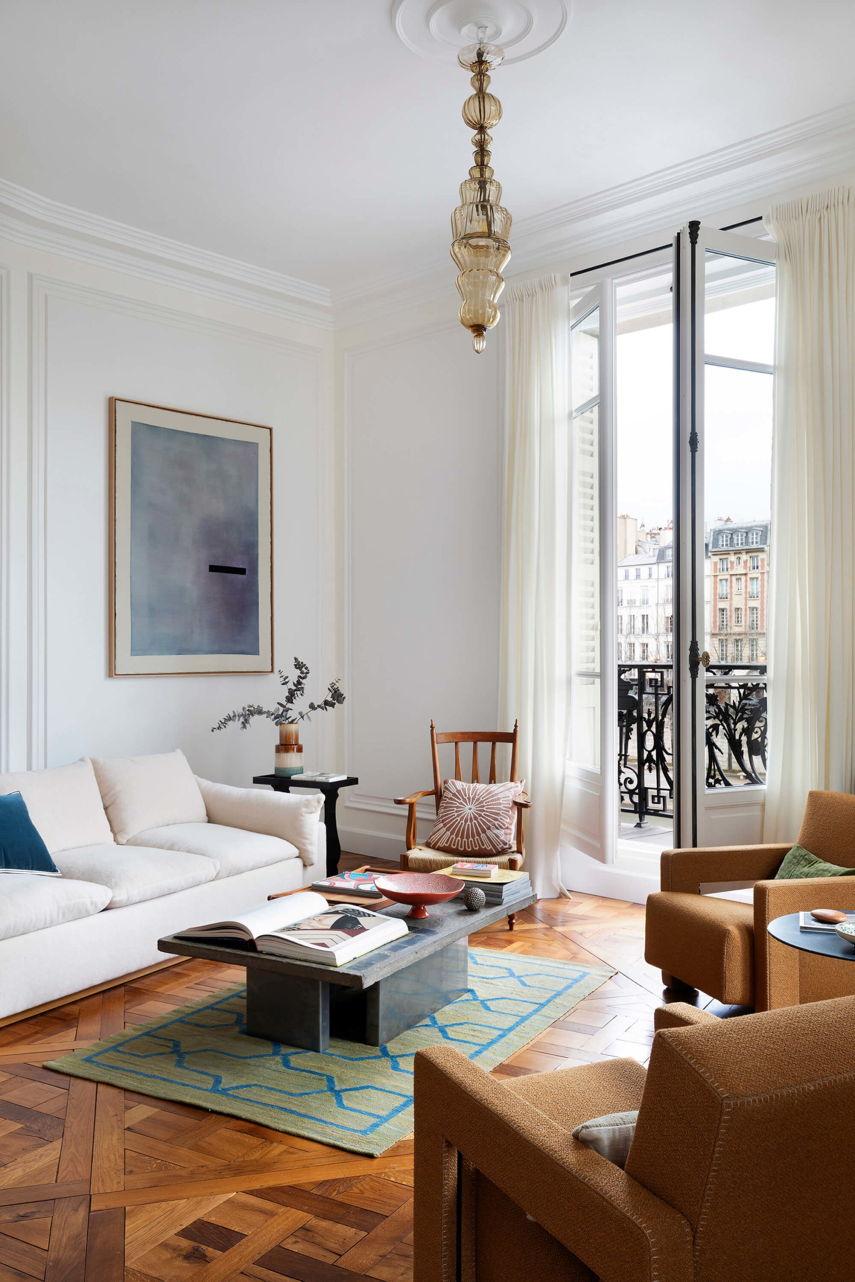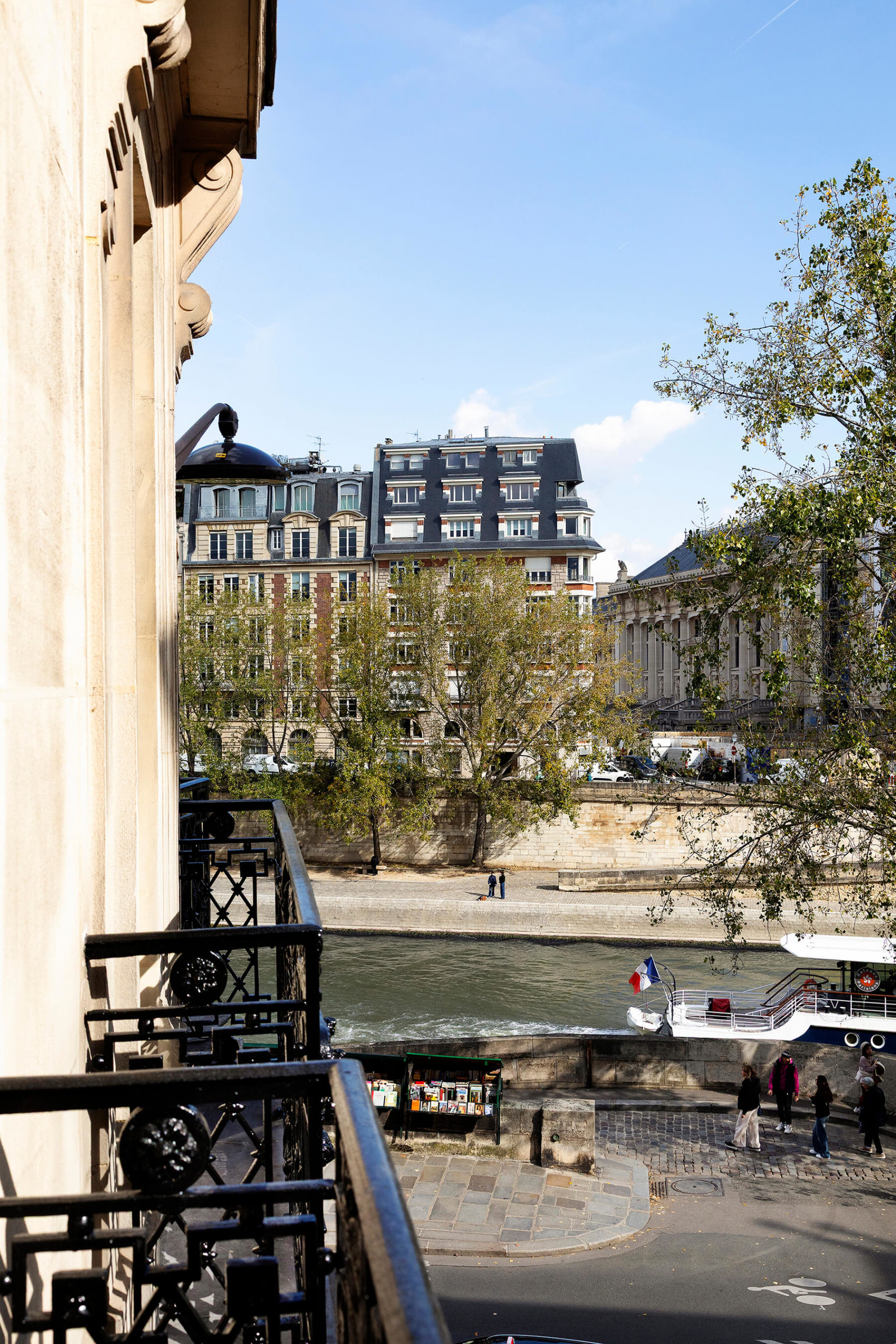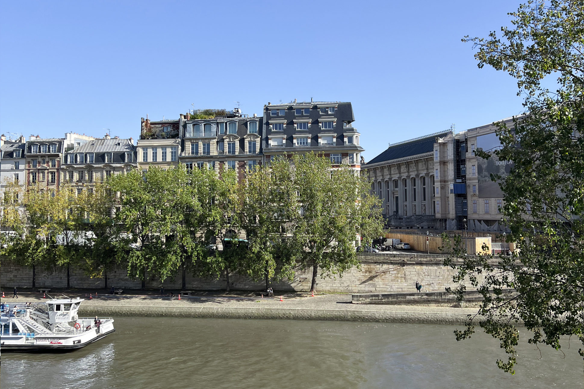 The views from this lovely apartment are simply stunning…the Seine River and the newly restored Notre Dame Cathedral are beautifully framed in the three floor-to ceiling windows of the large living/dining room. The ceilings are high, measuring 3.4 m in the reception space, as well as the two bedrooms. The floorplan of this 93 m2 apartment is well-designed allowing for a gracious entrance hall, large reception room which includes an open-plan kitchen, a guest bedroom and bathroom, and an elegant primary bedroom with an en-suite bathroom and dressing room. A balcony which wraps around the apartment allows one to get even closer to the romantic Parisian views.