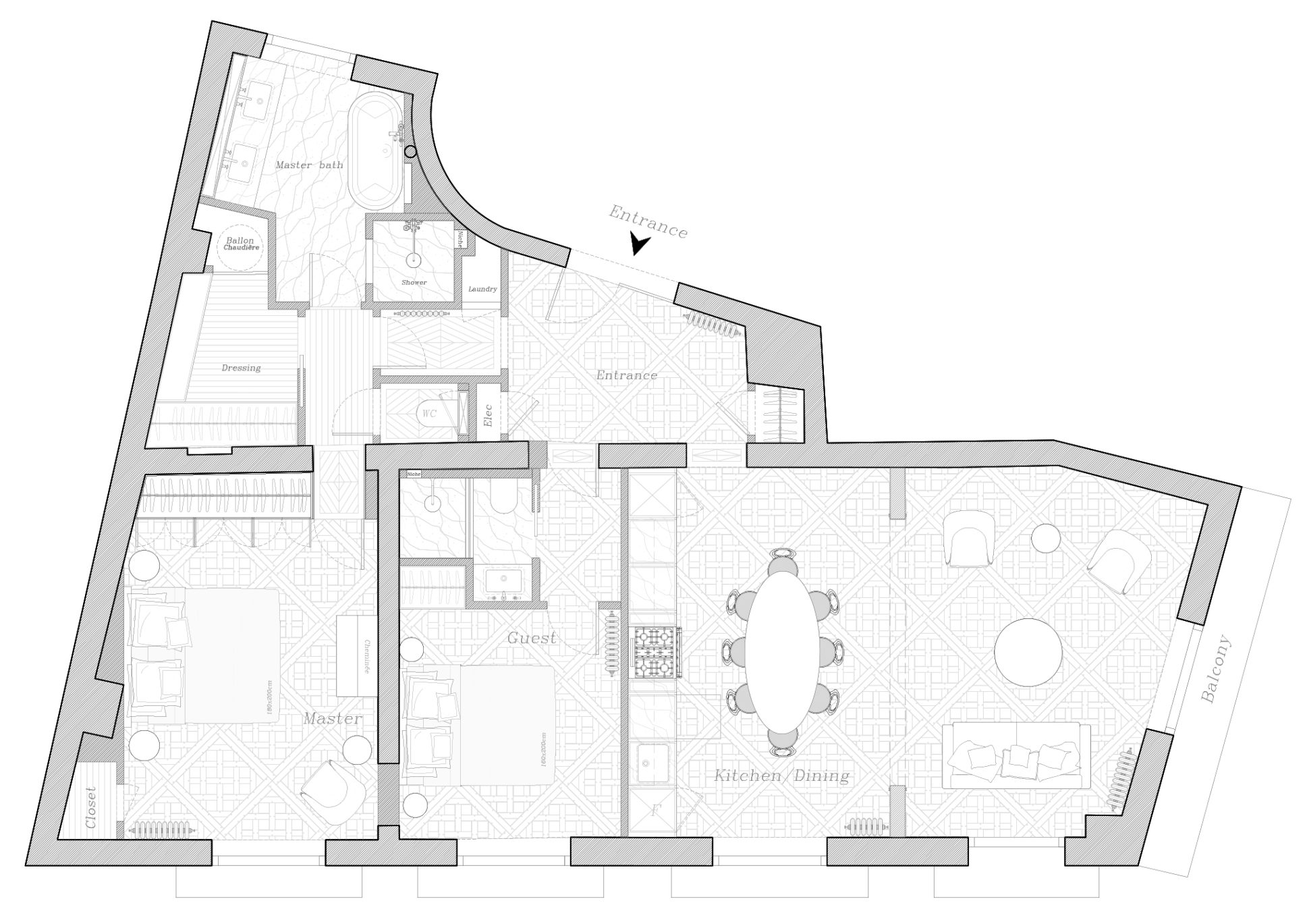Au deuxième étage d’un bel immeuble du XIXᵉ siècle, cet élégant appartement d’angle de 94 m² se distingue par ses volumes et sa hauteur sous plafond de 3,40 m. Son plan en étoile structure l’espace avec élégance : depuis l’entrée habillée de boiseries, on accède à un vaste séjour baigné de lumière, offrant des vues spectaculaires sur la Seine et Notre-Dame, récemment restaurée. La suite principale dispose d’un dressing et d’une salle de bains attenante, et une seconde chambre dispose également de sa propre salle d’eau. Les éléments d’origine – boiseries, cheminée, parquet Versailles, moulures et corniches – ont été soigneusement restaurés, préservant ainsi tout le charme intemporel du lieu. L’appartement est entièrement climatisé.