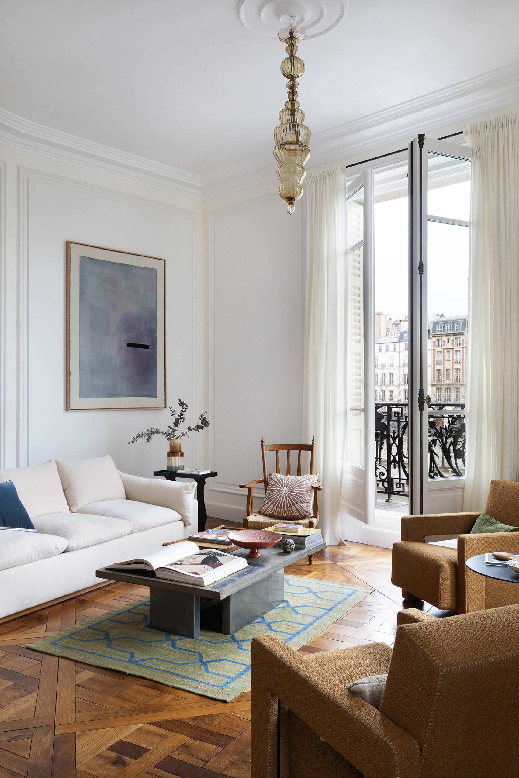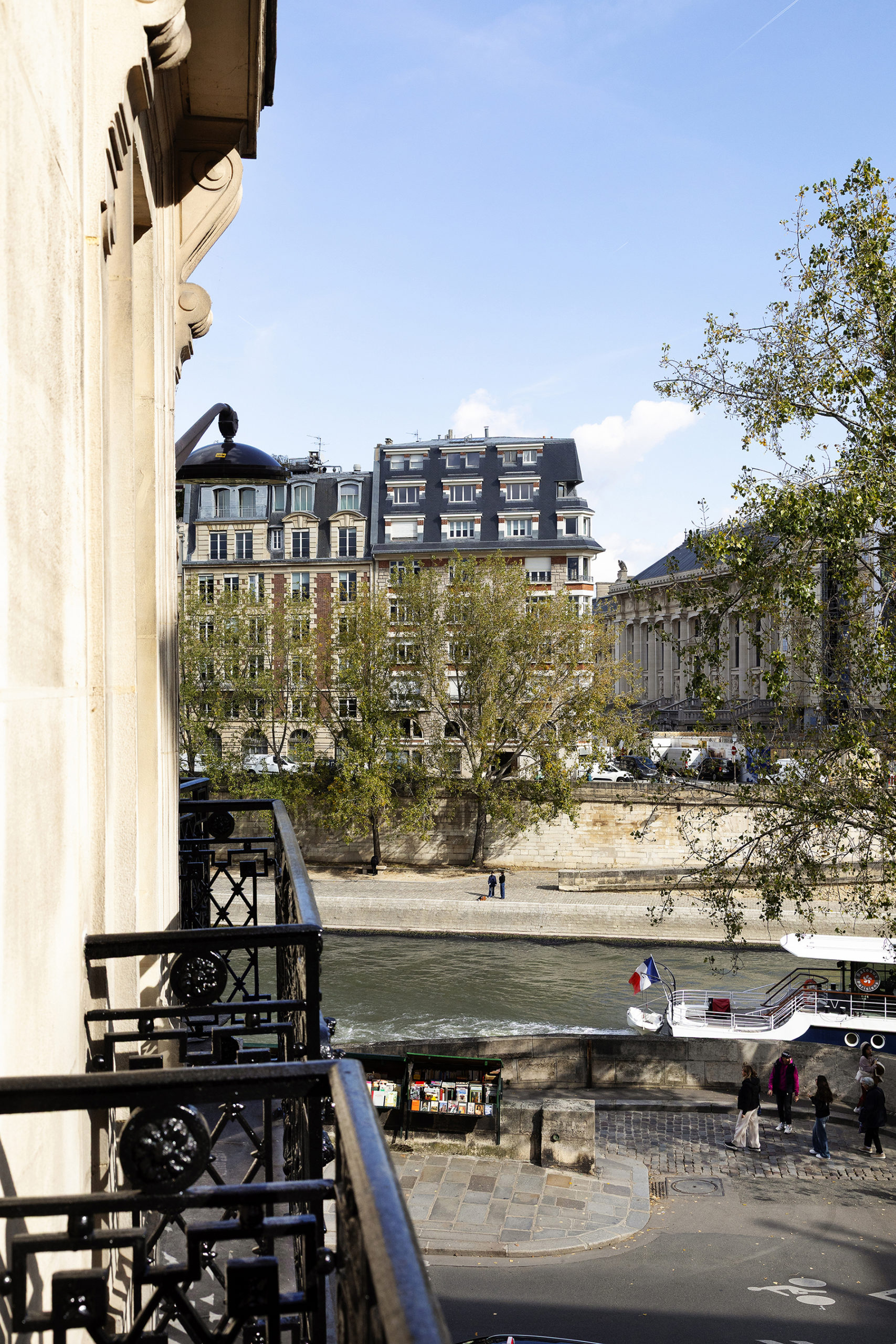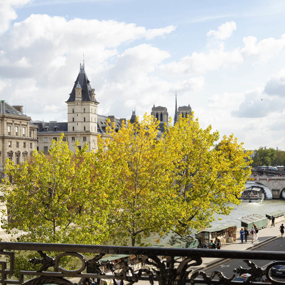 Au deuxième étage d’un bel immeuble du XIXᵉ siècle, cet élégant appartement d’angle de 93 m² se distingue par ses volumes et sa hauteur sous plafond de 3,40 m. Son plan en étoile structure l’espace. L’entrée dessert un vaste séjour baigné de lumière offrant des vues spectaculaires sur la Seine et Notre-Dame, avec une cuisine dinatoire ouverte. La suite principale dispose d’un dressing et d’une salle de bains attenante, la seconde chambre d’une salle d’eau. Les éléments d’origine – boiseries, cheminée, parquet Versailles, moulures et corniches – ont été soigneusement restaurés, préservant ainsi tout le charme intemporel du lieu. L’appartement est entièrement climatisé.