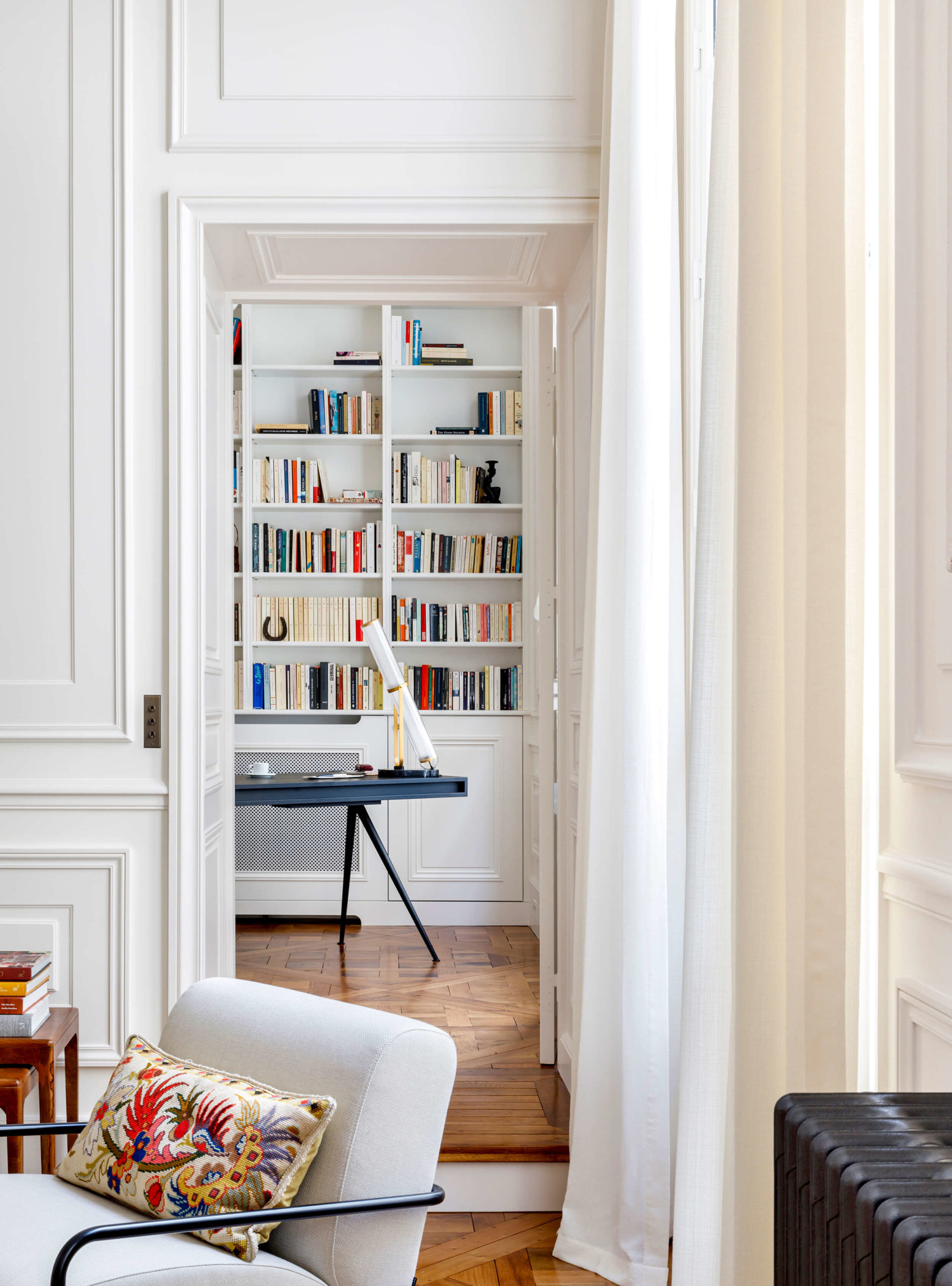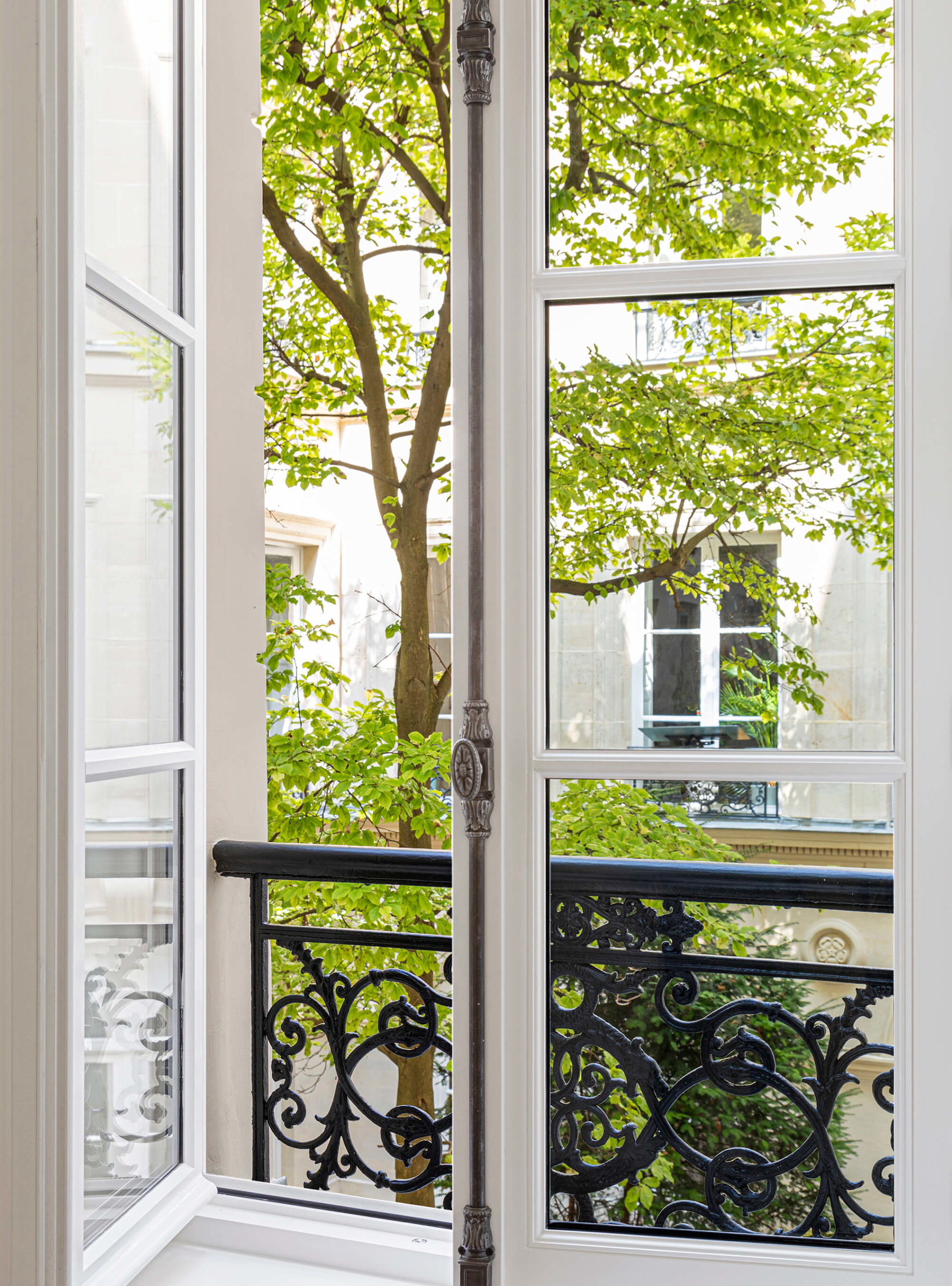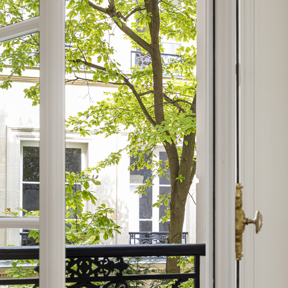 Dans un immeuble de 1850 parfaitement entretenu, cet appartement traversant entre jolie cour plantée et rue, incarne la quintessence de l’élégance classique. L’entrée dessert un vaste séjour, puis une grande cuisine dinatoire à la fois chaleureuse et fonctionnelle. Donnant sur cour, la chambre principale jouit d’un dressing et d’une grande salle-de-bains. Toujours sur cour, la seconde chambre a sa salle d’eau en suite. Un bureau complète ce pied-à-terre idéal. De généreux volumes, un magnifique parquet Versailles, des moulures raffinées et de grandes fenêtres.