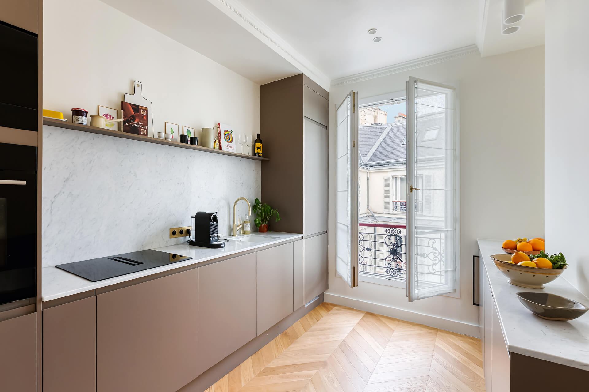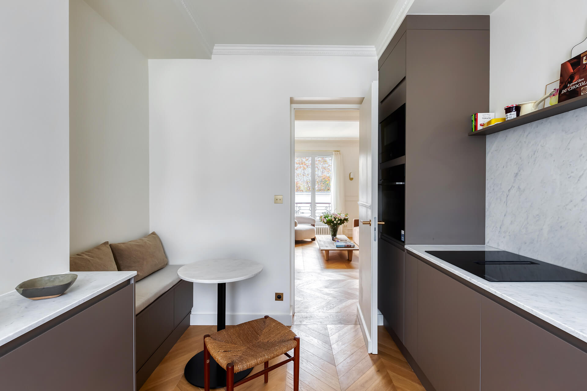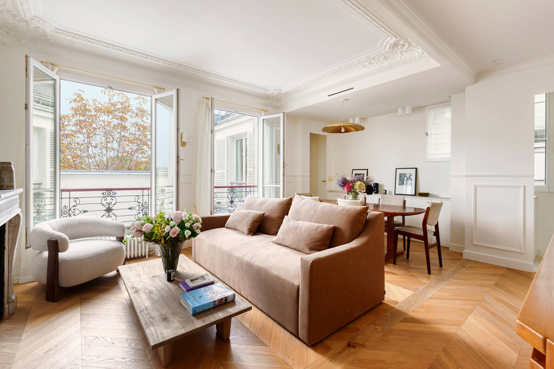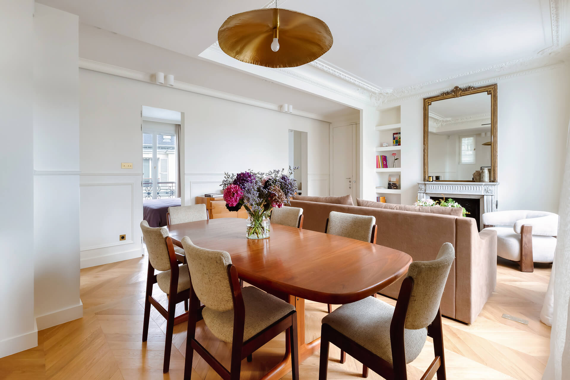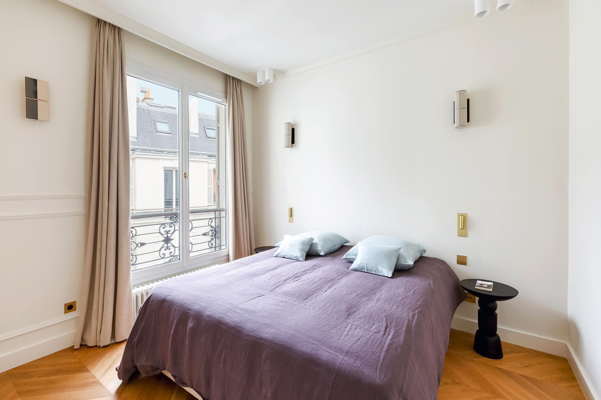 Rue de Villersexel, au 5e étage d’un bel immeuble haussmannien, un ravissant appartement traversant de 81 m2. Il se compose d’une entrée, un grand séjour, deux chambres avec chacune leur salle-de- bains et salle d’eau. Cuisine dînatoire, wc invités. Climatisation. L’appartement est très lumineux et au calme absolu.